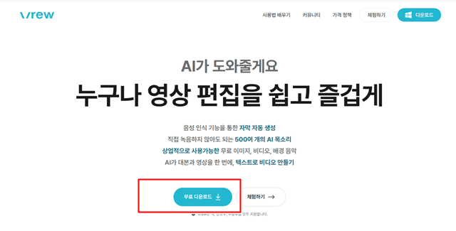 1. VREW 홈페이지에 접속합니다.
