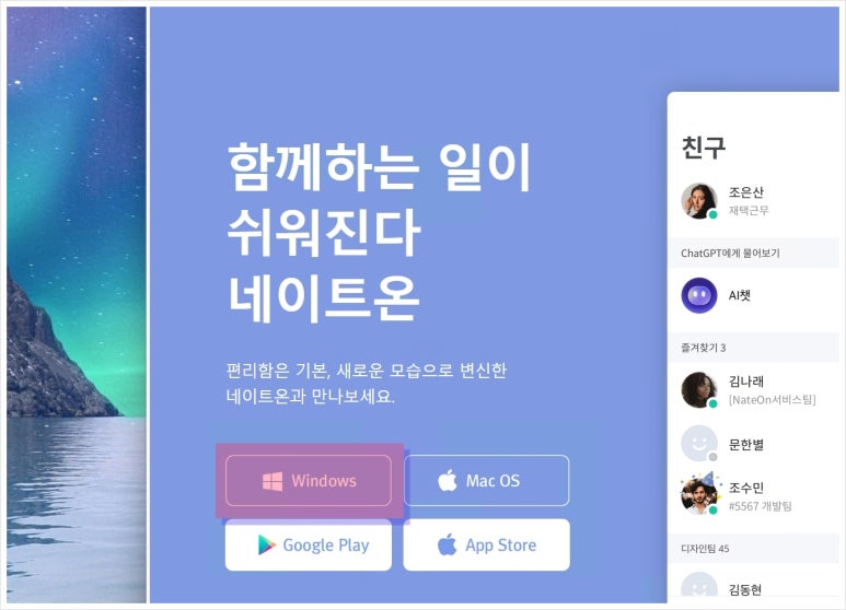 1. 여기를 눌러 NateOn PC 다운로드 받습니다. 필자가 준비한 링크를 이용하여 네이트온 PC 버전 다운로드 설치 및 관련 정보를 확인할 수 있습니다. 공식 홈페이지를 방문하게 되면 WINDOWS 및 macOS에서도 설치 가능한 플랫폼별 다운로드 링크를 제공합니다.