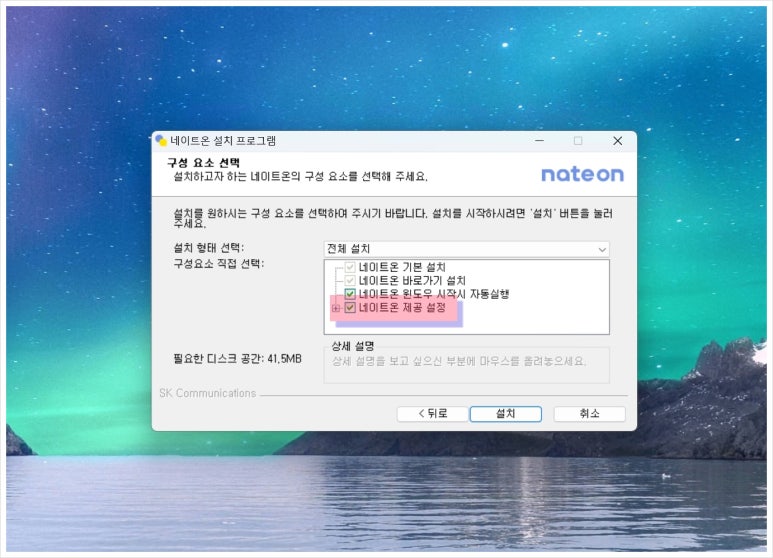 5. 네이트온 제공 설정 옵션은 체크 해제를 하고 끈 상태에서 설치 버튼을 누르면 되겠습니다. 예전에 사용하던 네이트 (Nate) 계정을 그대로 가지고 있다면 동일한 방법으로 네이트운 메신저 사용이 가능하였습니다.