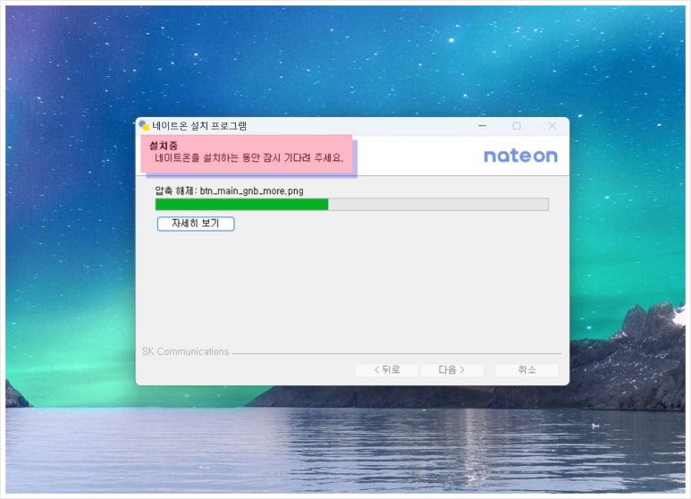 6. 잠시 후 NateOn 프로그램 설치가 진행이 되고 완료가 될 때까지 잠시만 기다려 보도록 하겠습니다. 개인용은 물론 업무용 메신저로도 여전히 유효하기 때문에 많은 사람들이 사용을 해보면 좋을 것 같습니다.