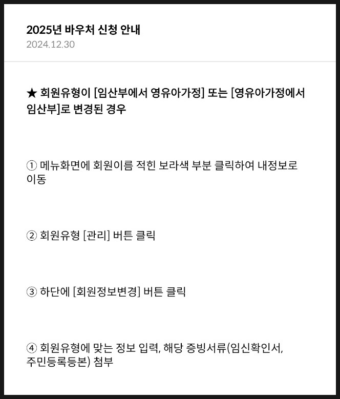 2024년에 가입 안하셨던 분들이라도 2025년에 신규로 가입해서 24개월 이하 영유아 증빙하면 바우처 10개 생기니 참고하세요. (2025년 1월 2일부터 앱에서 신청가능해요)