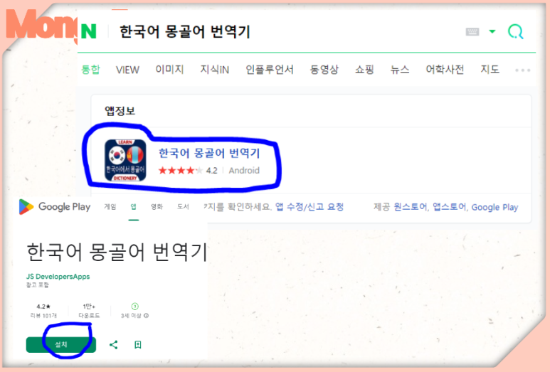 우선은 앱을 다운로드 해주셔야합니다. 그러기 위해서는 store로 접속을 해주셔야하는데 검색어를 입력해주시면 되는데 몽골어 번역기라고 검색을 해주시면 앱이 나오게 됩니다.