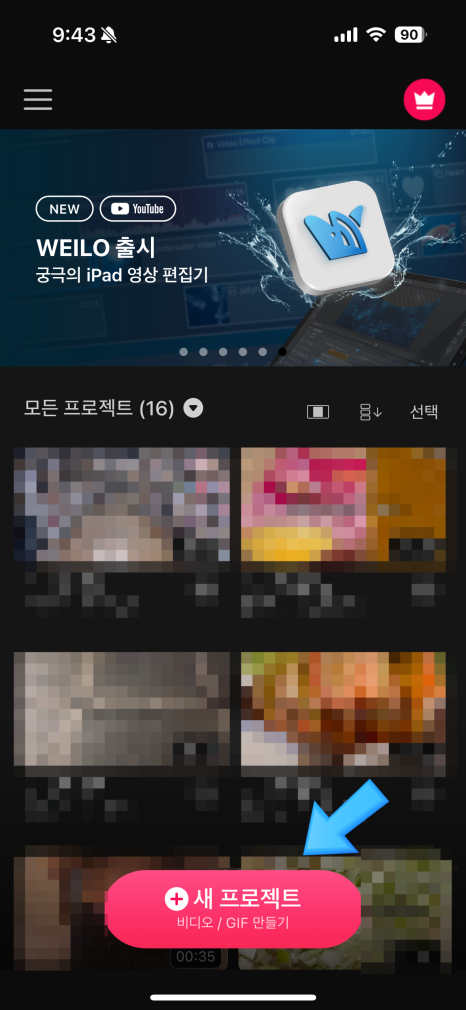 하단에 ‘새 프로젝트’를 누르면 내 앨범 속 미디어를 선택할 수 있는데요,