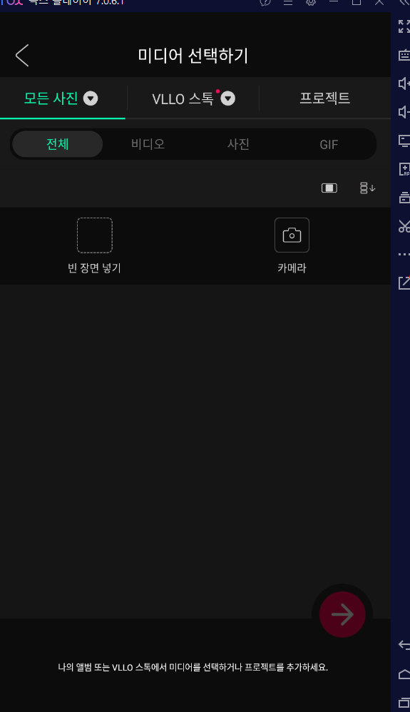 ​영상에 사용할 비디오 또는 사진을 선택하고 우측 하단 화살표 버튼을 눌러주세요.
