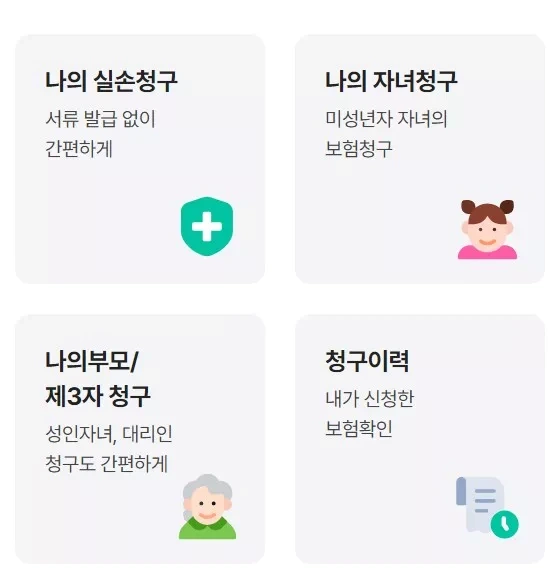 직접 보험금 청구서 작성이 어려운 경우에는 ‘나의 부모/제삼자 청구’ 서비스를 통해 타인이 대신 작성해 줄 수 있습니다. 다만, 작성된 보험금 청구서는 반드시 본인이 직접 전송해야 청구가 완료됩니다. 이때 본인 확인이 필수이기 때문에, 휴대전화가 없는 경우에는 이 서비스를 이용하기 어려운 점을 참고해야 합니다.