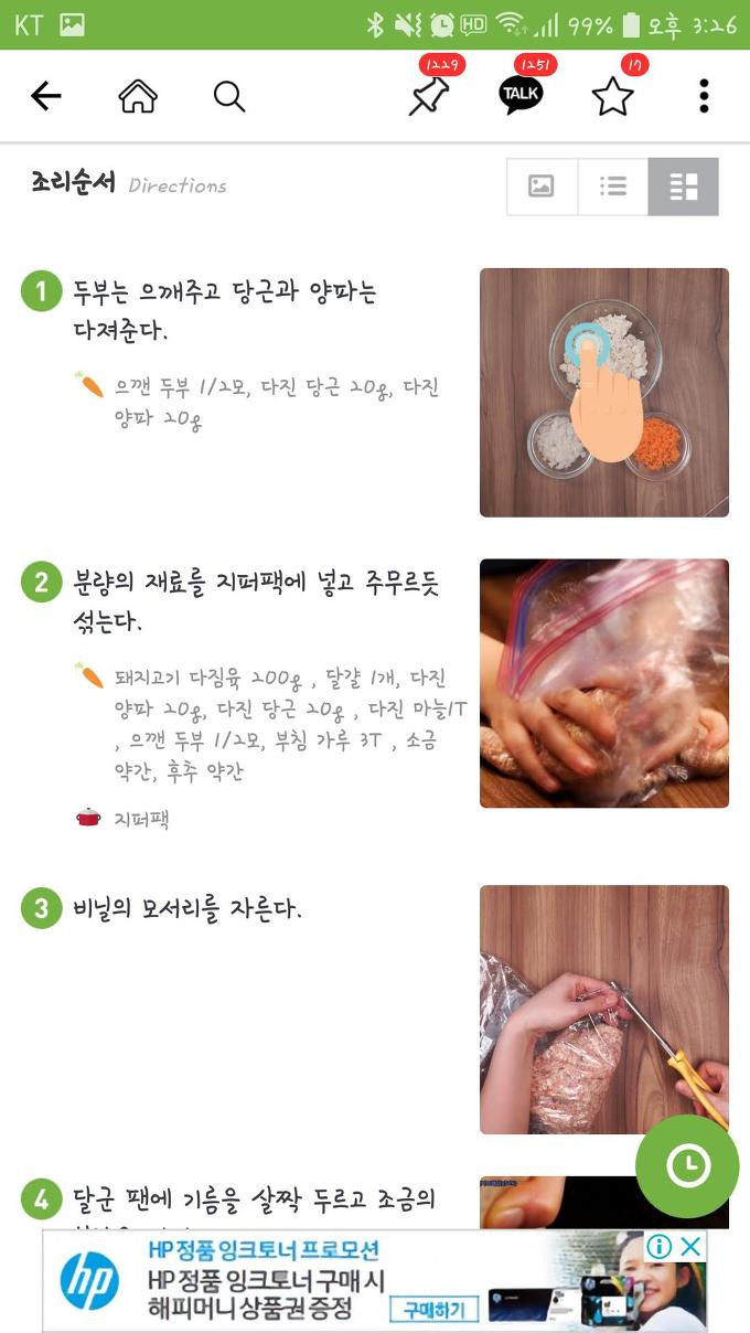 만약 동영상으로 요리방법을 보는 것이 불편하다면 아래쪽에 있는 사진과 글을 확인해서 내 요리순서에 따라 한장씩 넘겨서 볼 수도 있습니다.