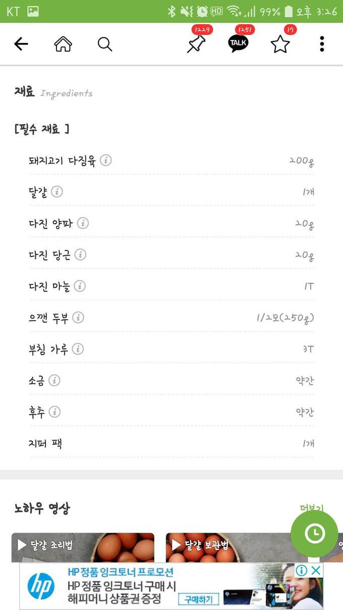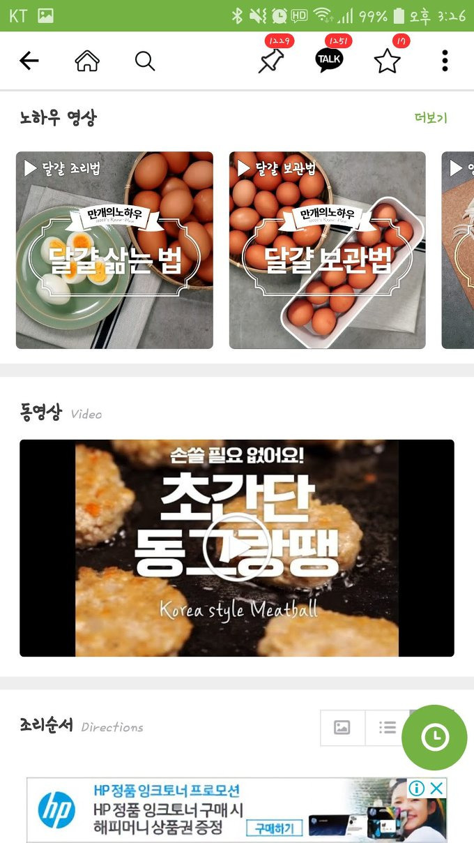 대부분의 화면 하단에는 광고가 띄워져 있고 동영상으로 나오는 광고도 대부분의 요리페이지에 존재합니다. 하지만 워낙 방대한 양의 레시피가 포함되어 있기 때문에 다른 요리앱과는 비교하기에는 무리인 거 같습니다.