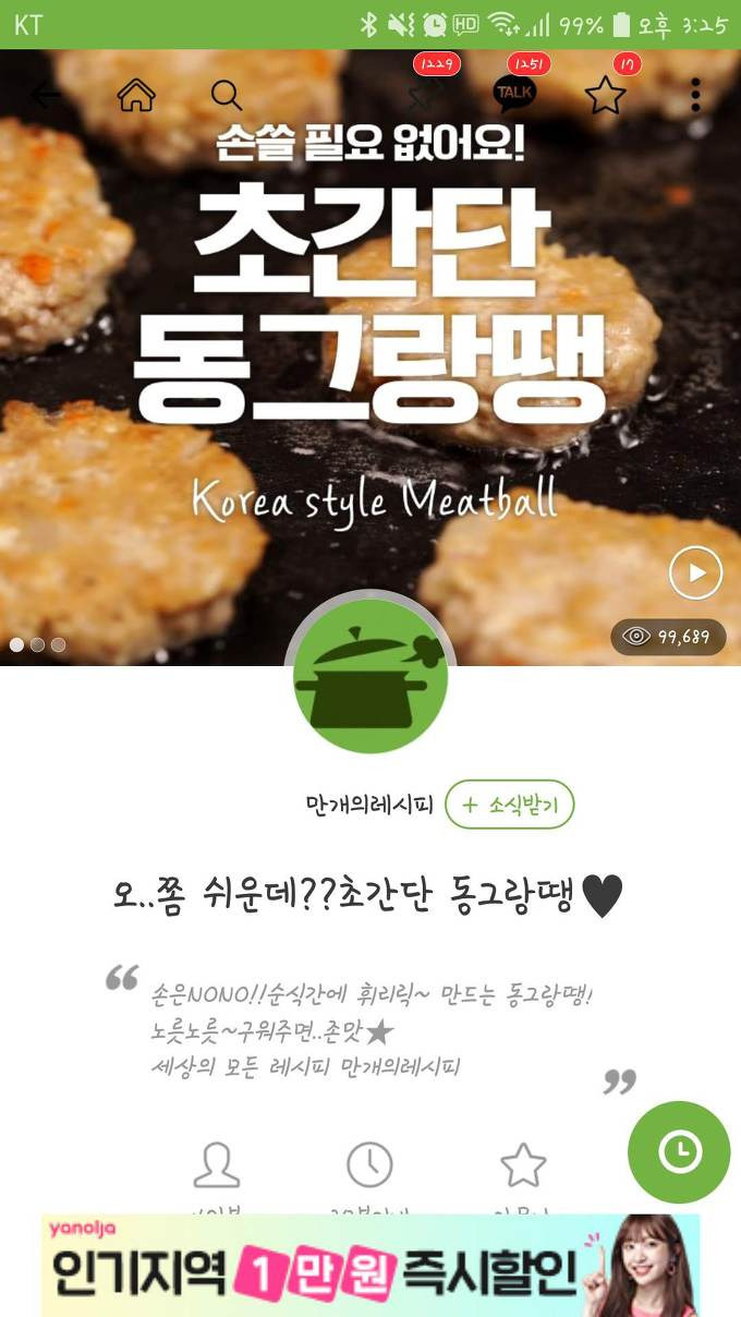 만개의 레시피앱이 불편한 점이 있다면 너무 광고가 많다는 겁니다.