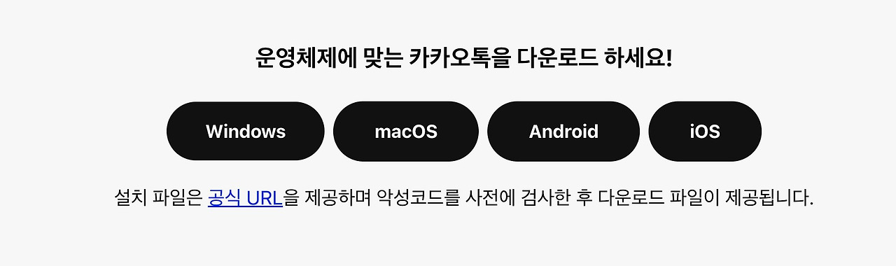 카카오톡은 반드시 공식 웹사이트를 통해 다운로드해야 보안상 안전합니다.
