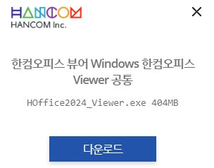 4. 다운로드를 클릭하면 설치 파일이 컴퓨터에 저장됩니다. 한컴오피스 뷰어는 Windows 환경에서 실행되며, 간단한 설치 과정을 거쳐 바로 사용할 수 있습니다.