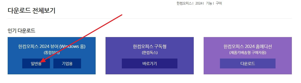 3. 인기 다운로드 항목에서 최신 버전의 한컴오피스 뷰어를 선택하세요. 최신 버전을 다운로드하면 보다 안정적인 환경에서 문서를 열람할 수 있습니다.