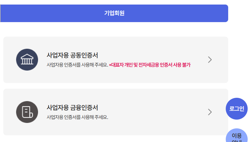 기업회원 로그인 방법
