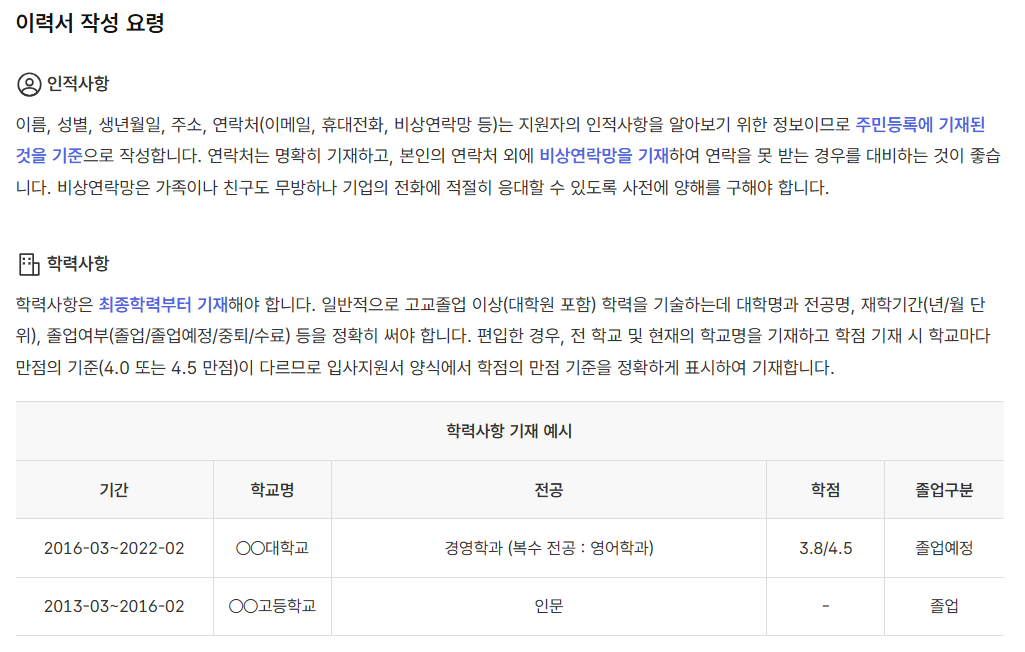 이력서 등록 방법