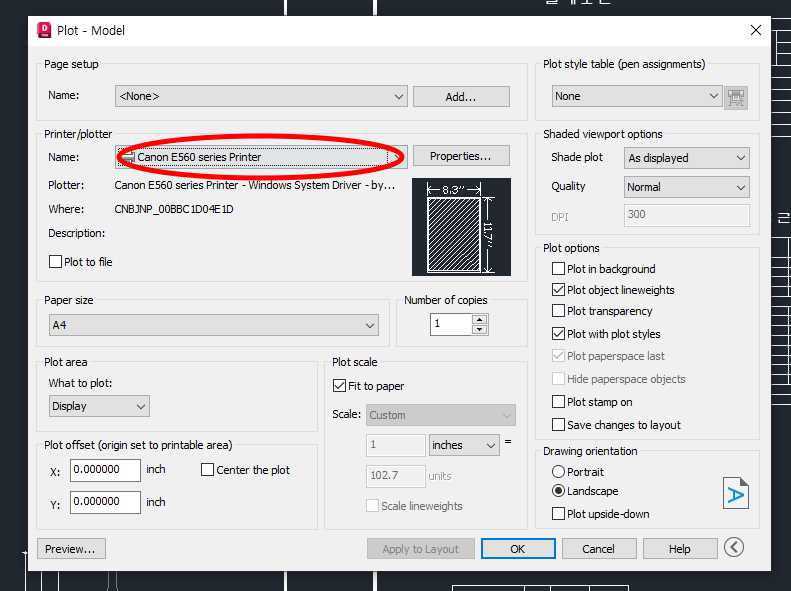 6) 프린터 탭에 Name을 보시면 프린터로 인쇄가 가능합니다.
