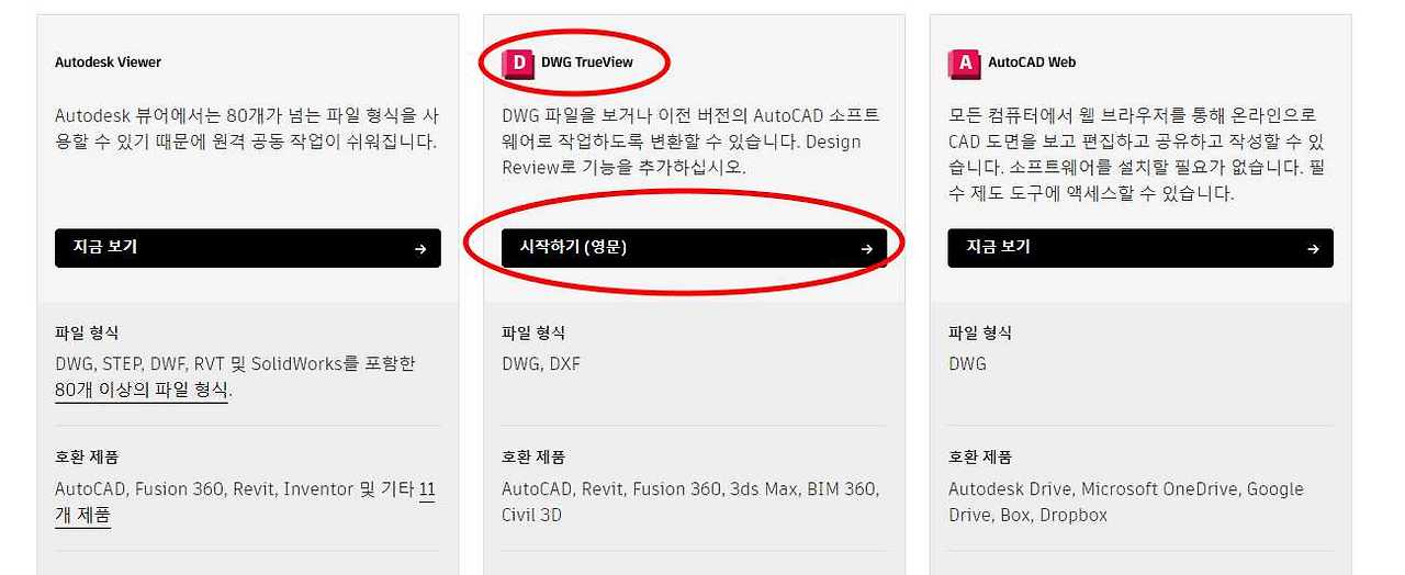 2) DWG TrueView에서 시작하기를 눌러서 들어갑니다.