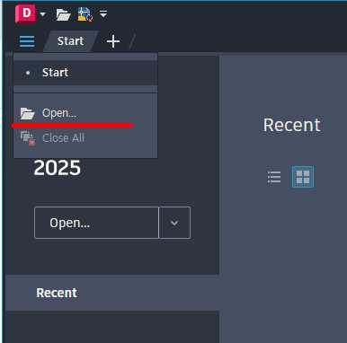 1) dwg 파일 보는법은 설치한 Autodesk DWG Truview 2025 뷰어를 실행하고 왼쪽 상단에 3줄모양 메뉴를 누릅니다.