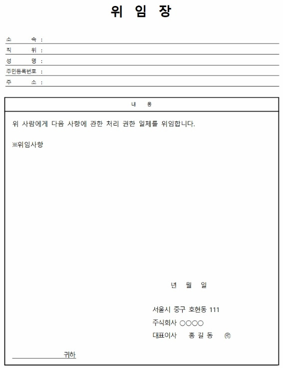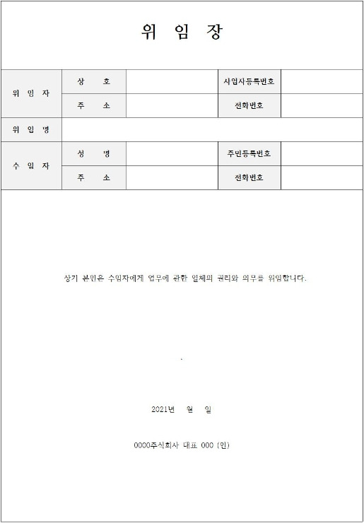 2. 위임장은 누가 누구에게 어떤 권한을 위임하는지를 명확히 기재하는 것이 핵심입니다.