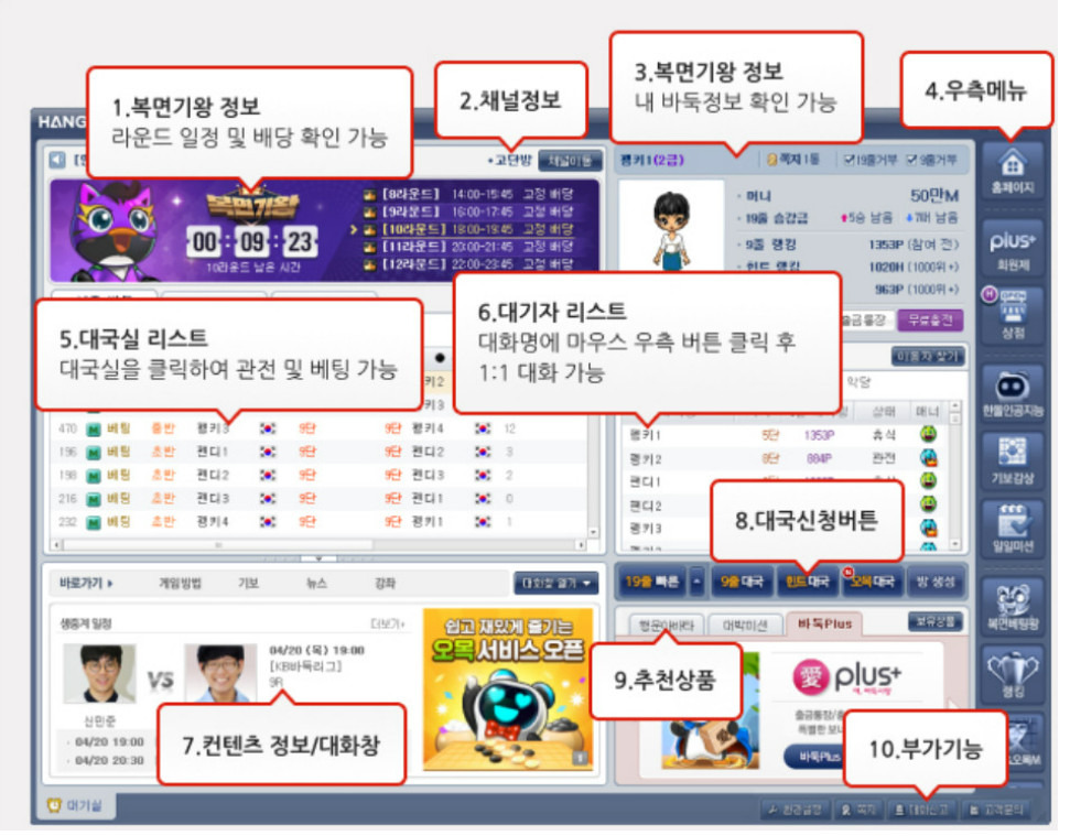• 한게임 바둑의 복명기왕이 진행 중일 경우 바로 입장할 수 있습니다.