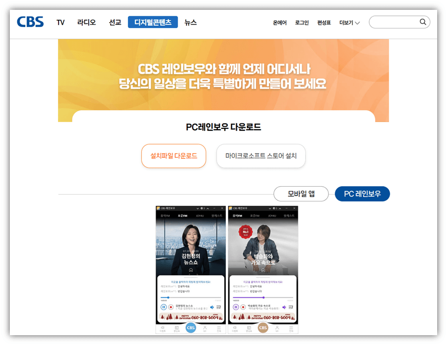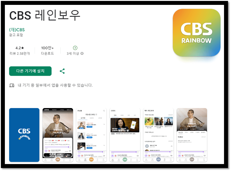 CBS 라디오 레인보우 모바일 앱 설치
