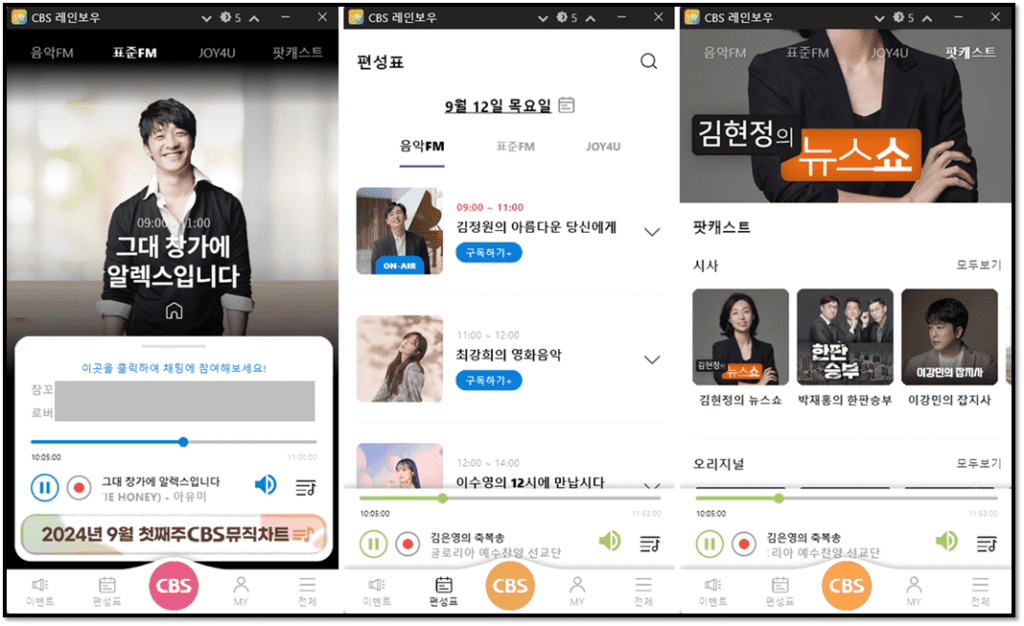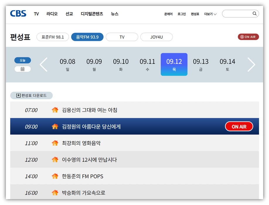 CBS 라디오 온에어 편성표 다시듣기